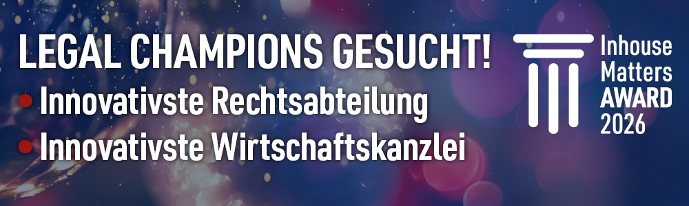 Herzlichen Dank für Ihre Bewerbung um den Inhouse- Matters-Award 2026. Ihre Unterlagen sind bei uns eingegangen und werden nun überprüft.
